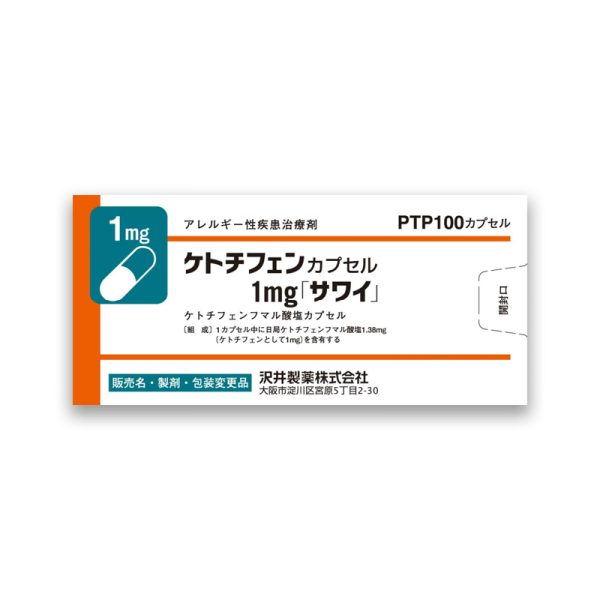 | 日文商品名 | ケトチフェンカプセル1mg「サワイ」:100カプセル (ケトテンカプセル1mg) |