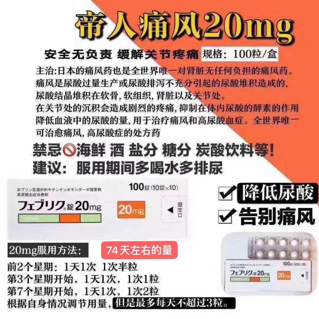 帝人痛风20mg 100粒/盒 非布司他 /非布索坦片